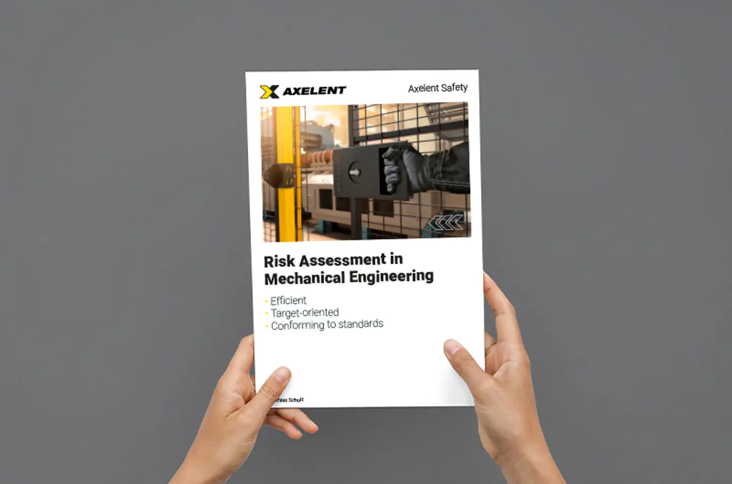 Para ayudar a los departamentos de diseño con la transición a la evaluación de riesgos basada en tareas, Axelent proporciona el folleto gratuito "Evaluación de riesgos en ingeniería mecánica". El folleto es un extracto del libro completo sobre evaluación de riesgos de nuestro experto en seguridad, Matthias Schulz, y describe brevemente en términos prácticos cómo hacer una evaluación de riesgos basada en tareas. Además, los clientes pueden descargar un ejemplo completo de evaluación de riesgos de nuestro sitio web. El folleto está disponible en cinco idiomas de forma gratuita, mientras que el libro "Evaluación de riesgos en la práctica" está actualmente disponible en alemán.