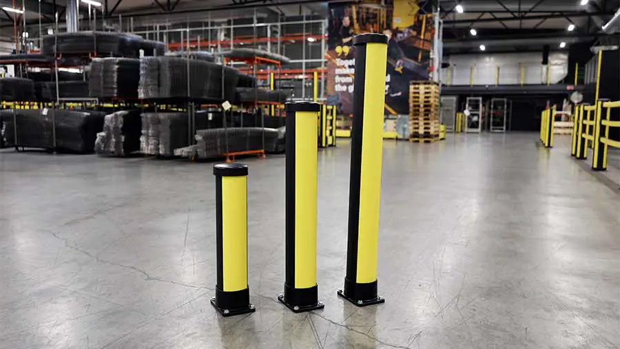 Los bolardos X-Protect protegen esquinas, puertas y equipos frente a impactos de vehículos. Su esquema de color negro y amarillo mejora la visibilidad y ayuda a dirigir el tráfico de carretillas, creando recorridos industriales más seguros y bien organizados.